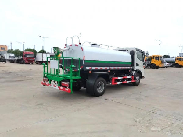 【性能簡(jiǎn)介】前沖(噴)后灑,帶側(cè)噴花灑,罐體后帶工作平臺(tái)。平臺(tái)上安裝綠化灑水高炮,炮可全方位360°旋轉(zhuǎn),炮噴射形狀可連續(xù)調(diào)成直沖狀、大雨、中雨、小雨、毛毛雨,平臺(tái)邊安裝灑水砣和低位花灑,罐體右上側(cè)安裝高位花灑。配備自吸自排優(yōu)質(zhì)灑水泵,吸程≥7m,灑水寬度15-21m,灑水炮射程20-35m,帶消防接口、濾網(wǎng)、自流閥,罐體管道和防護(hù)網(wǎng)采用鍍鋅材料,罐體采用碳鋼板,內(nèi)有隔板,罐體機(jī)器人自動(dòng)焊接。采用底盤自帶原裝取力器,上裝面漆為烤漆。帶灑水警示音樂(lè)和小警燈,帶水位計(jì)。緊急時(shí)可抗旱和消防運(yùn)水。