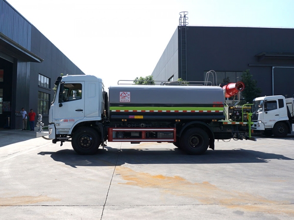 【選裝配置】20米綠化卷盤或藥泵,氣動閥控制噴灑球閥,低水位報警,LED大號箭頭燈,罐內防腐,不銹鋼管道、球閥、灑水泵、灑水炮、罐體。
