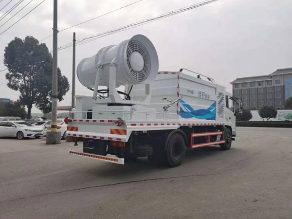 【性能簡介】多功能抑塵車主要用于城市空氣凈化、園林農藥噴灑、抑塵降霾、防疫消殺消毒、公路或竟賽場地的養護、保濕、降溫。可配置30米遠程噴霧機,配套動力功率8.5Kw,風機功率3Kw,水泵功率2.2Kw,風機噴頭數量16個,風機水平射程≥30m,風力強勁,水霧均勻,霧炮可全方位360°旋轉。